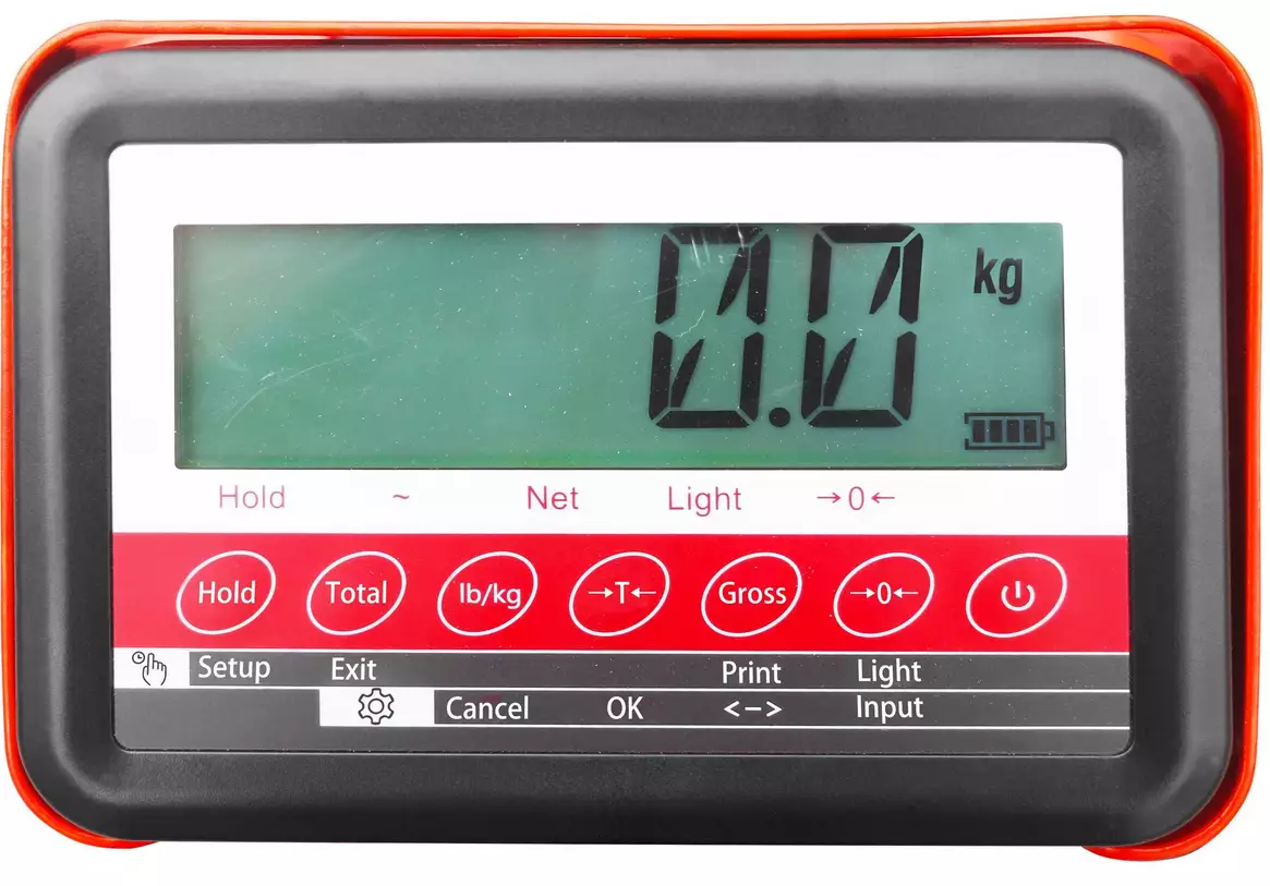 Gewichtanzeige ab 0 kg Last in 0,5 kg Schritten.
