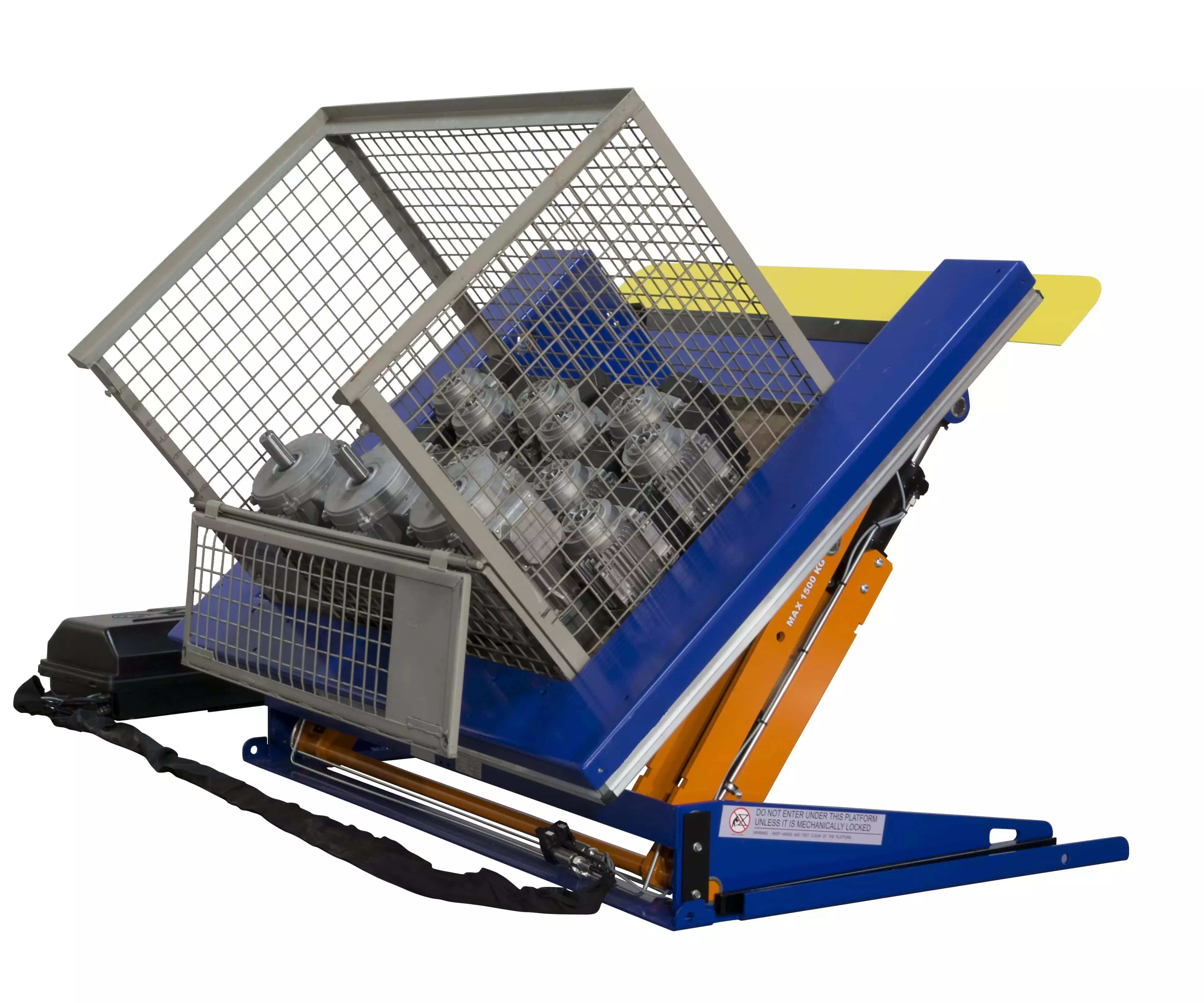 Im Vergleich zu herkömmlichen Hubtischen mit separaten Hebe- und Neigemechanismen ist der WALT 1500 GB eine äußerst kostengünstige Alternative. Aufgrund der abwärts gerichteten Neigung sind diese Hub-Neigegeräte besonders für hohe Paletten, Kisten und Container geeignet.