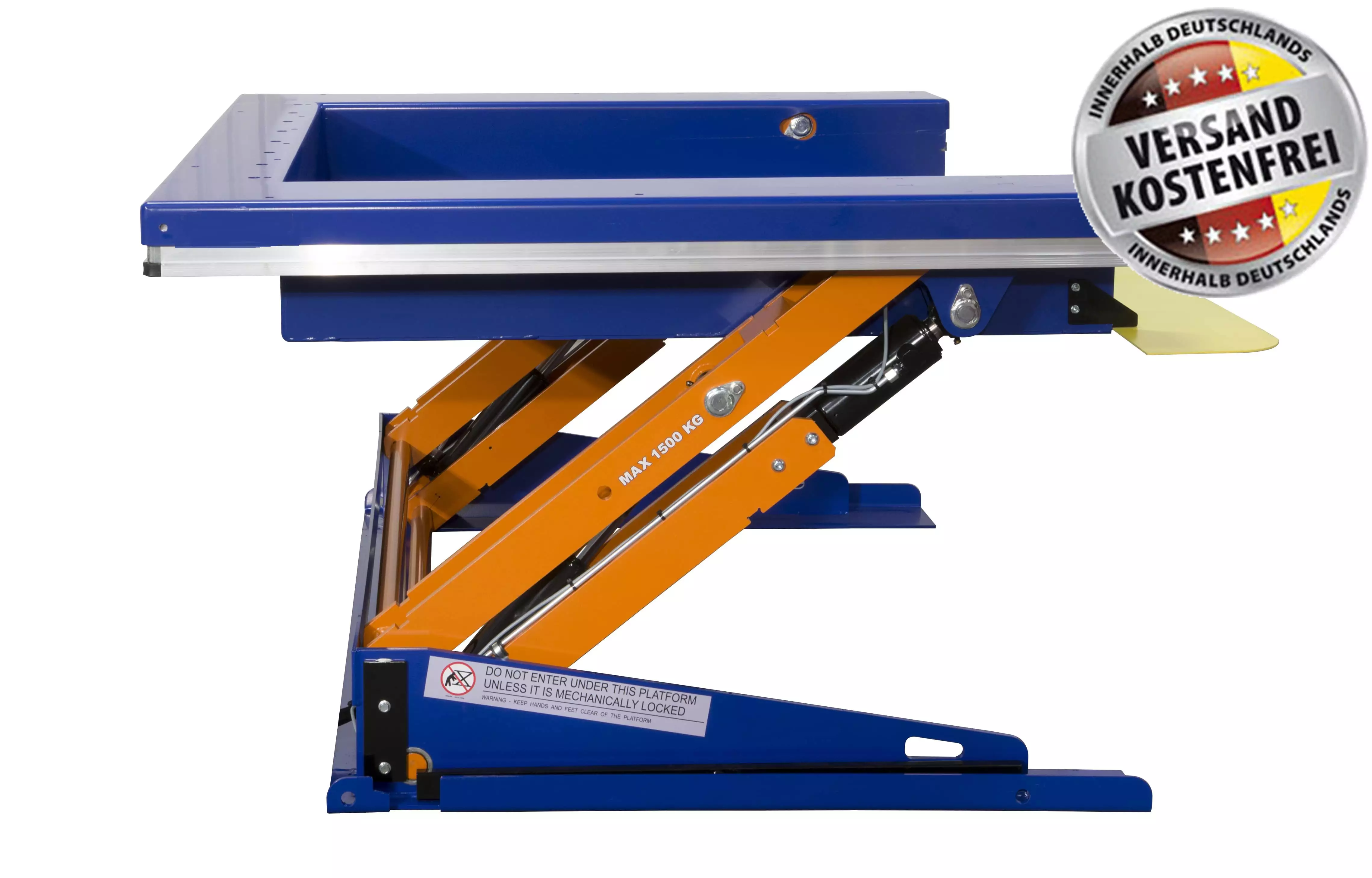 Tragfähigkeit 1.500 kg, U-förmige Ladefläche 1.200 x 1.270 mm, Hubhöhe 550 bis 820 mm