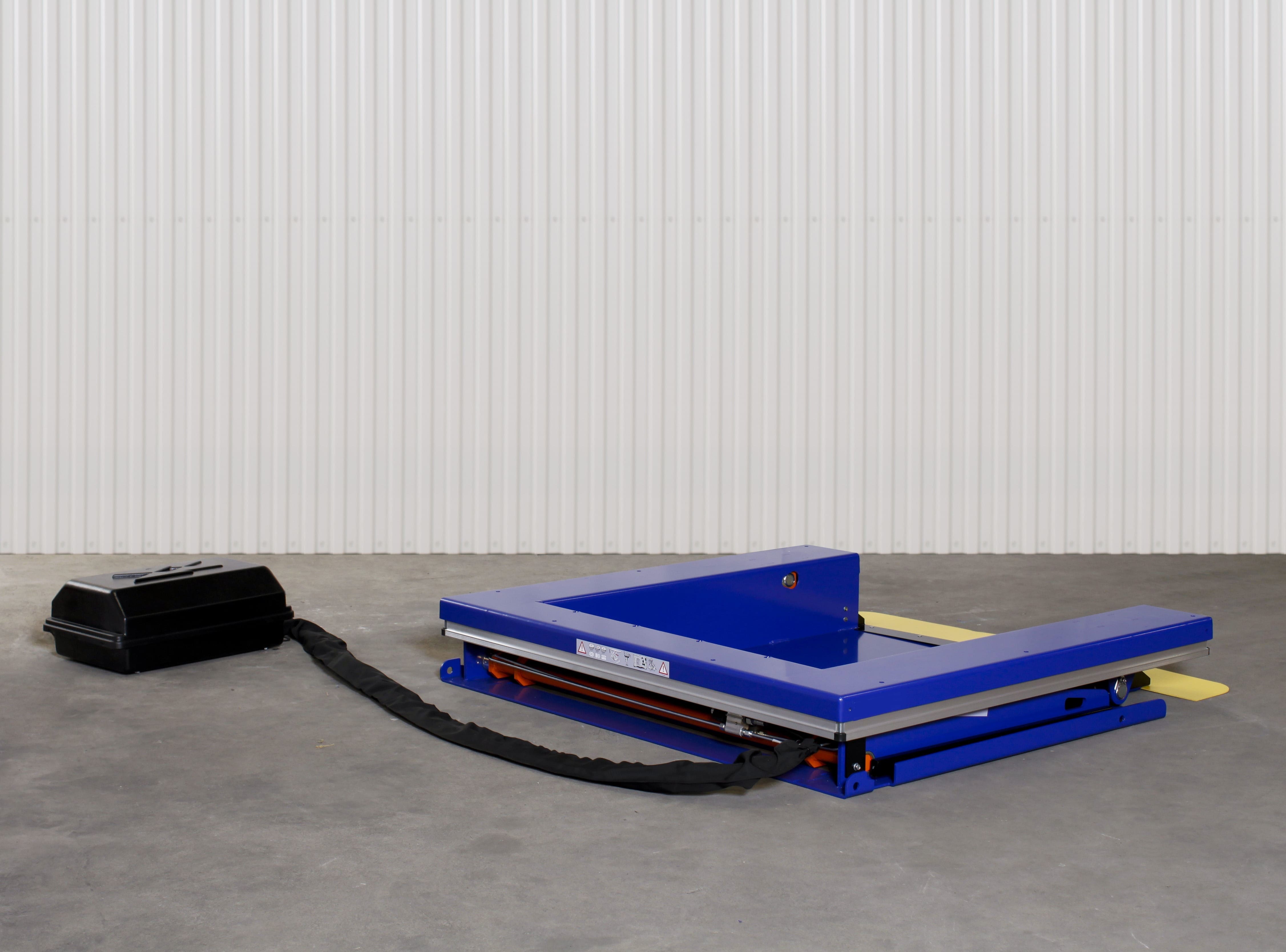 Die Modelle U und UE besitzen eine U-förmige Tischplatte, die nur eine Mindesthöhe von 6 mm hat, sodass Paletten, Container und Wagen direkt vom Boden gehoben werden können.