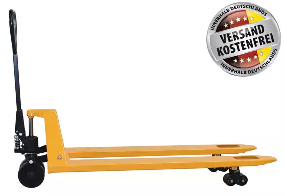 Unsere robusten und besonders manövrierfähigen Handgabelhubwagen haben höchste Funktionssicherheit und niedrige Wartungskosten. Abgerundete Gabelspitzen sorgen für mehr Komfort beim Einfahren in die Palette. Wir bieten Ihnen, für Ihren Einsatz die unterschiedlichsten Gabellängen zwischen 600 - 2.500 mm an.