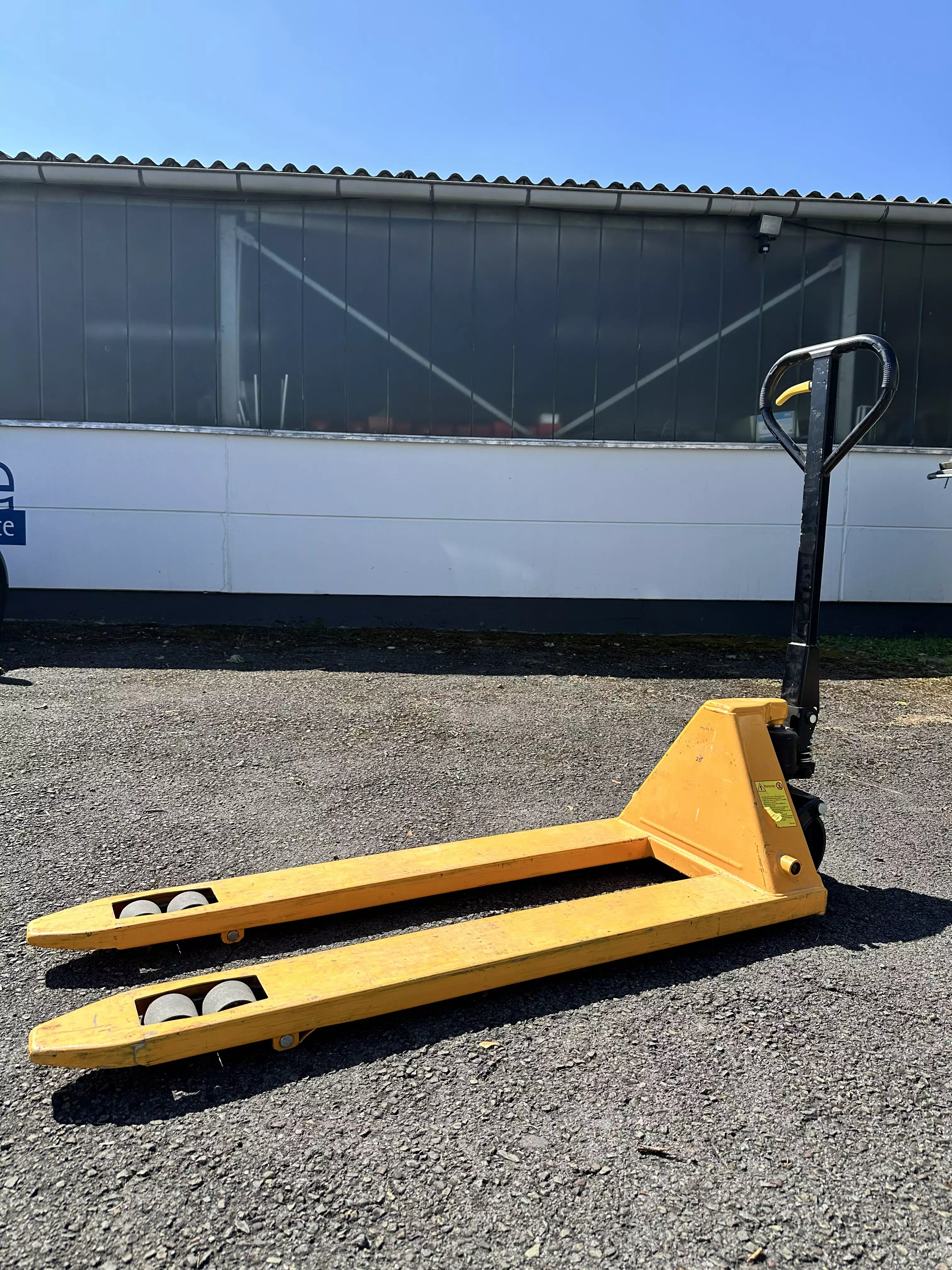 Der gebrauchte Handgabelhubwagen WOSE 1300 ist sehr robust und überzeugt durch seine Manövrierfähigkeit und niedrige Wartungskosten.