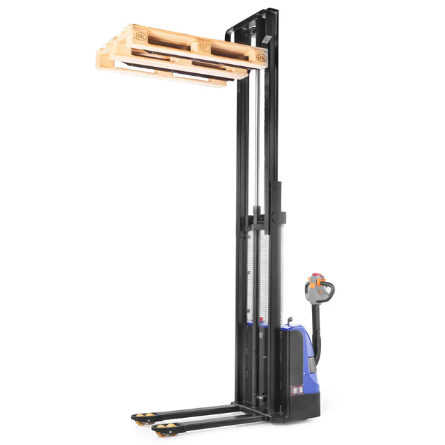 Er ist speziell darauf ausgelegt, Europaletten zu stapeln, zu lagern und zu transportieren. Die Laufzeit von bis zu vier Stunden pro Ladung macht ihn ideal für den gelegentlichen Gebrauch, ohne dass eine teure und aufwendige Ladeinfrastruktur erforderlich ist.