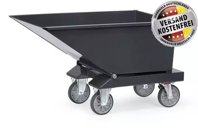 Der öldicht verschweißte Muldenkipper 4701 in Anthrazitgrau hat eine kippbar gelagerte Mulde aus 2 mm starkem Stahlblech, deren Rand oben zweimal umgekantet ist. Die Schüttkante ist doppelt umgelegt. Das Untergestell des Muldenkippers besteht aus 3 mm starken Kantprofilen mit integrierten Staplertaschen.